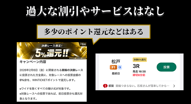 キャンペーンなどを頻繁に開催していますが、車券の購入を過度に促すことはなく、適切な販売・運営を行っているようです。