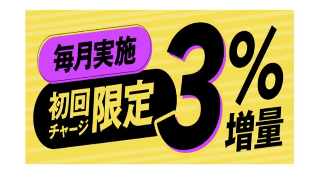 キャンペーンの内容は、毎月初回チャージ金額の3%がポイントとして付与されるというものです。