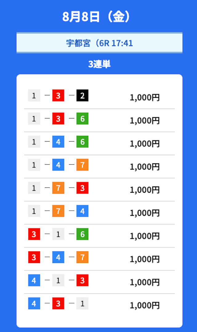 - 2025/08/08的中無料予想で28,700円獲得