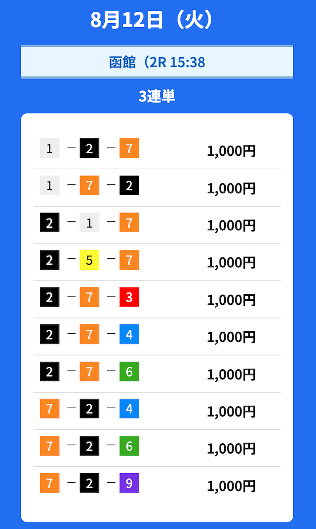 - 2025/08/12的中無料予想で65,300円獲得