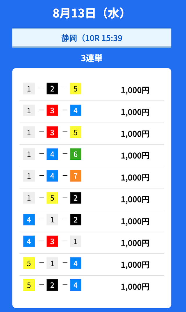 - 2025/08/13的中無料予想で39,200円獲得
