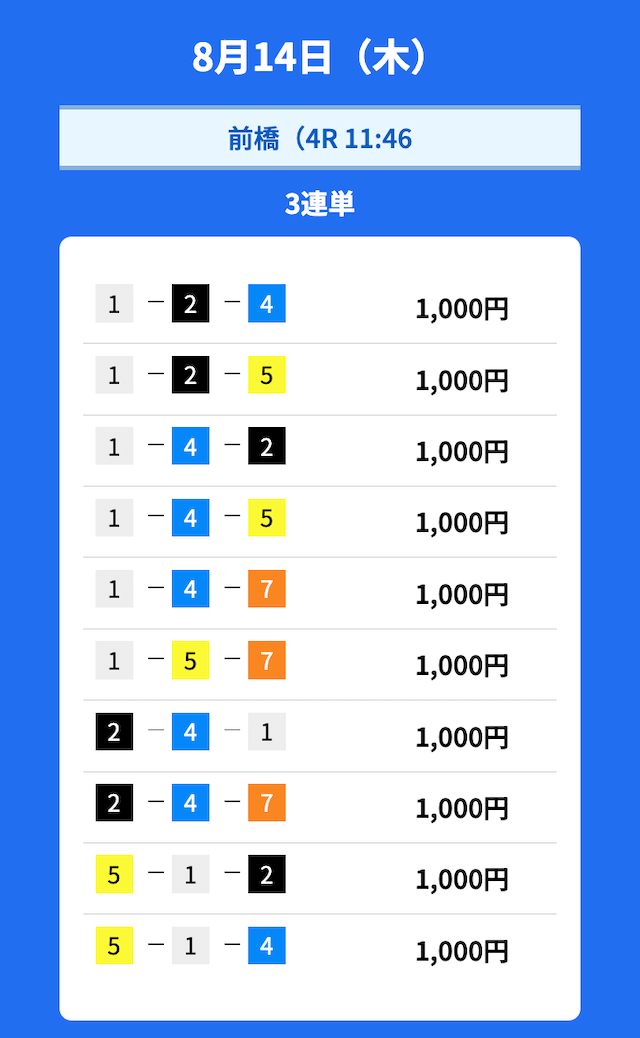 - 2025/08/04的中無料予想で71,200円獲得