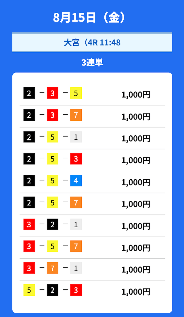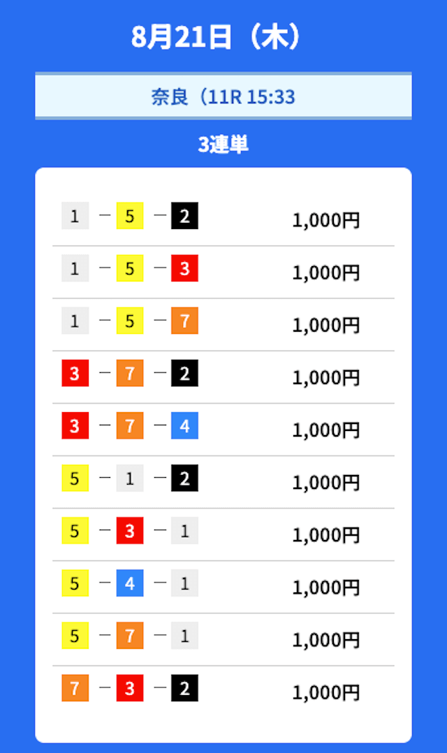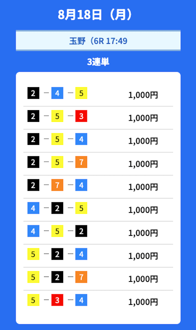 - 2025/08/24的中無料予想で35,000円獲得