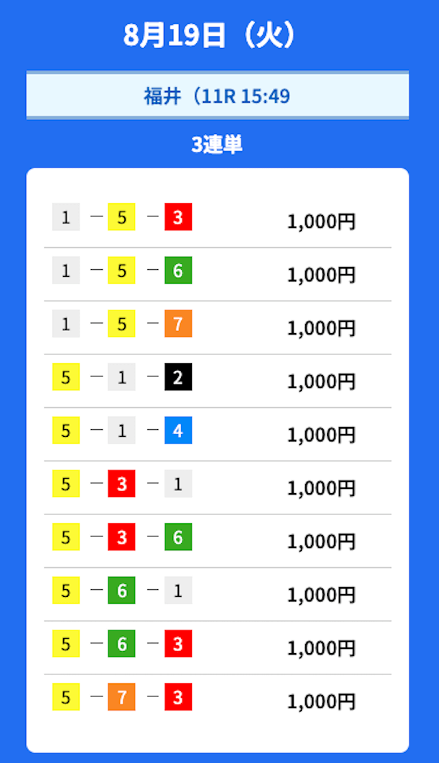 - 2025/08/19的中無料予想で22,900円獲得