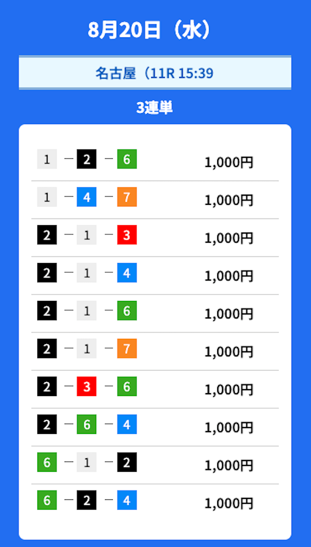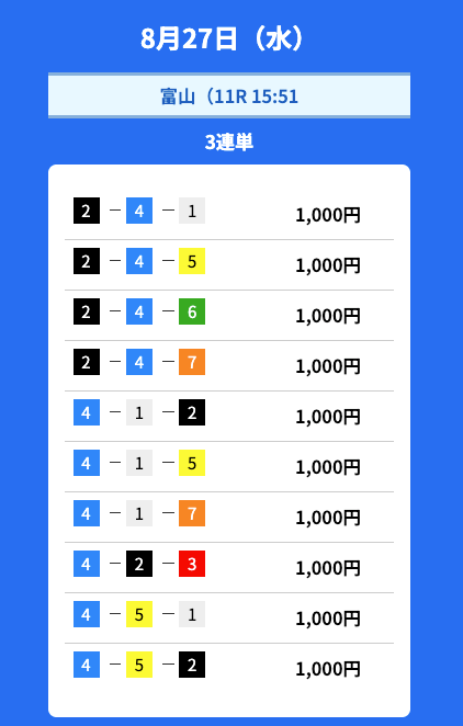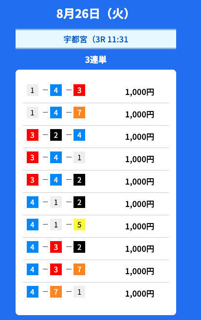- 2025/08/27的中無料予想で39,700円獲得