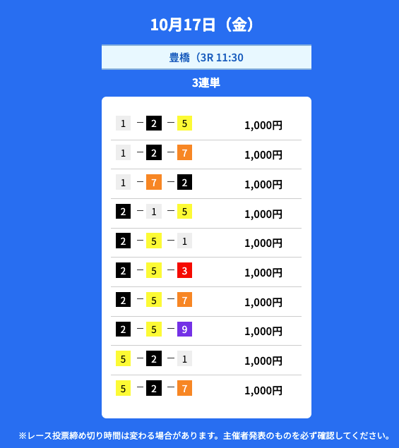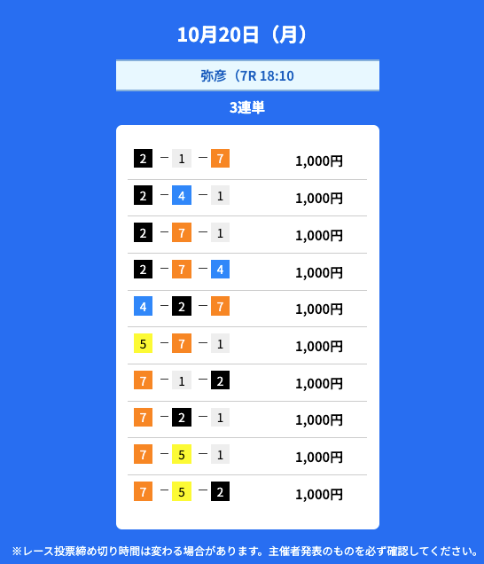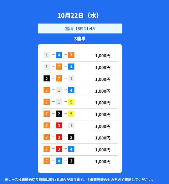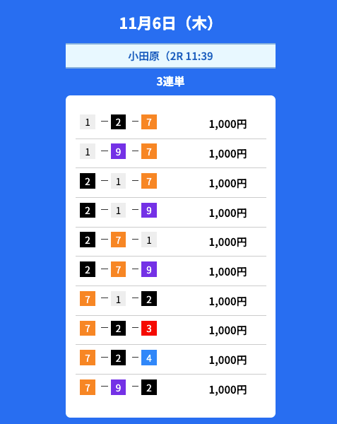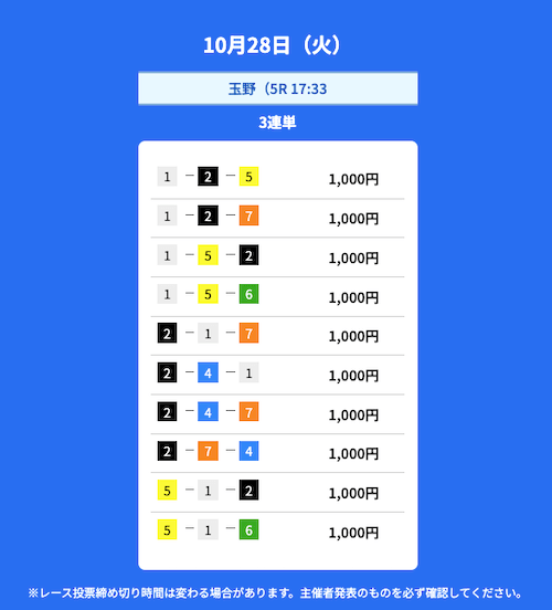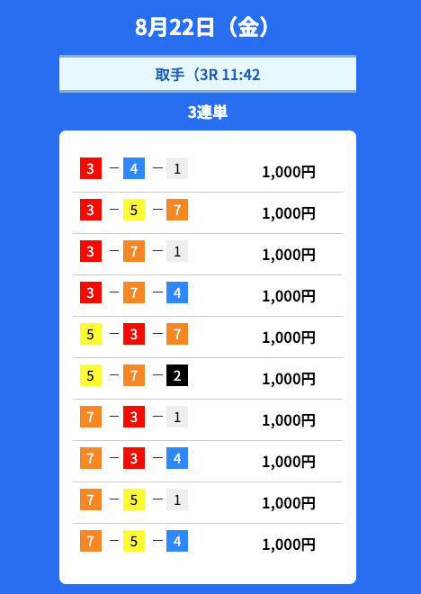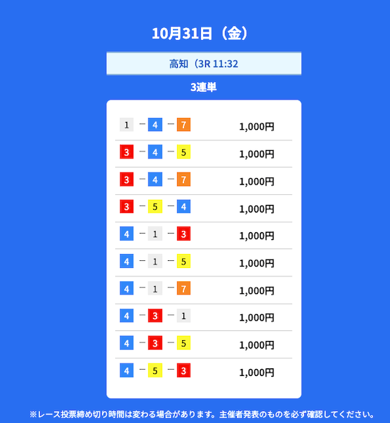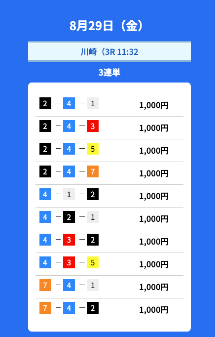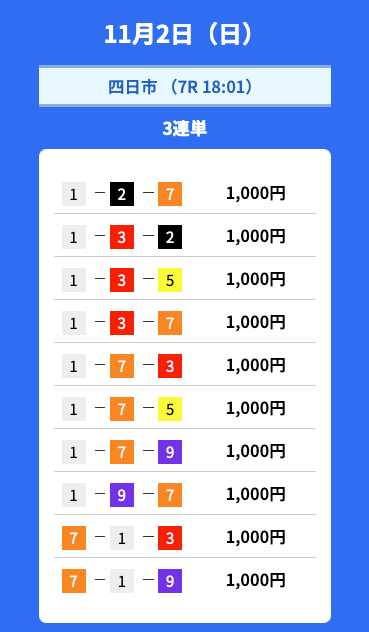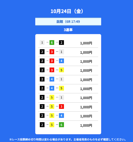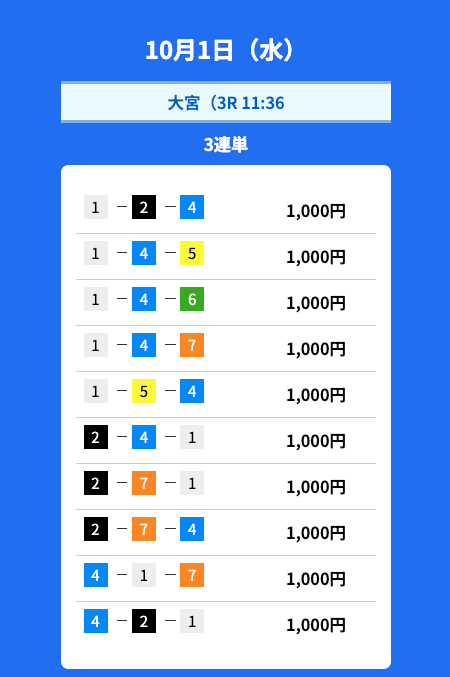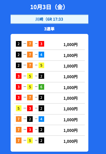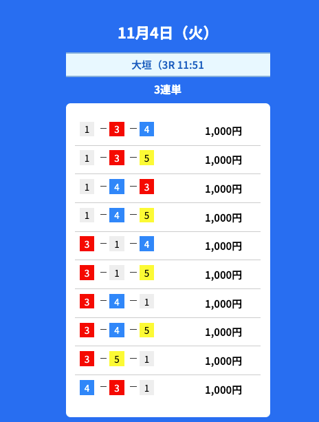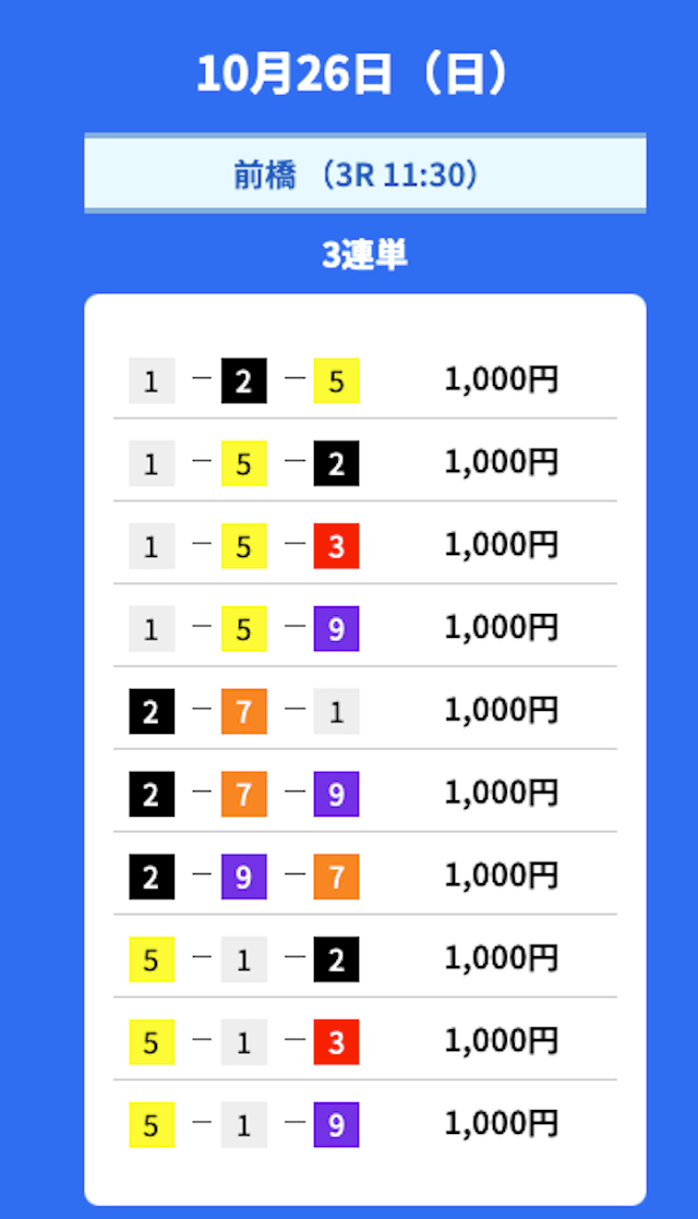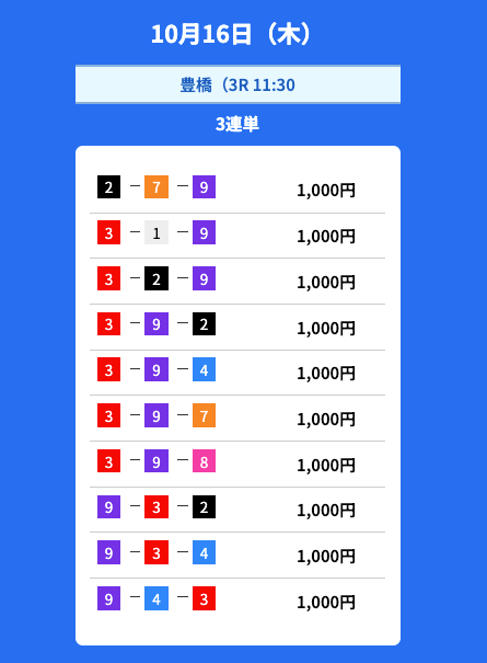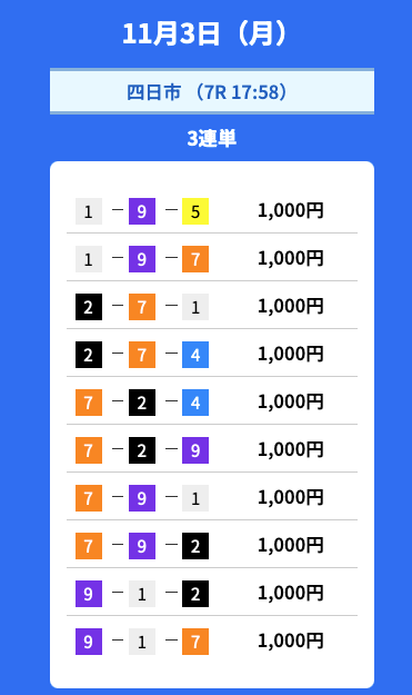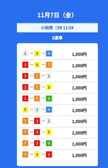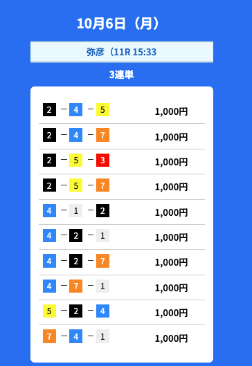 毎日3レース公開されてるのは嬉しいけど、やっぱり調子に波はある。3戦全的中の日もあれば、全ハズレの日も。だからこそ1レースに資金集中しすぎないのがコツかも。