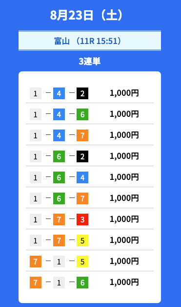 - 2025/08/23的中無料予想で24,800円獲得
