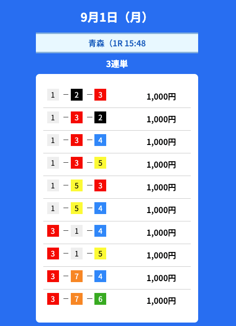 - 2025/09/01的中無料予想で34,300円獲得
