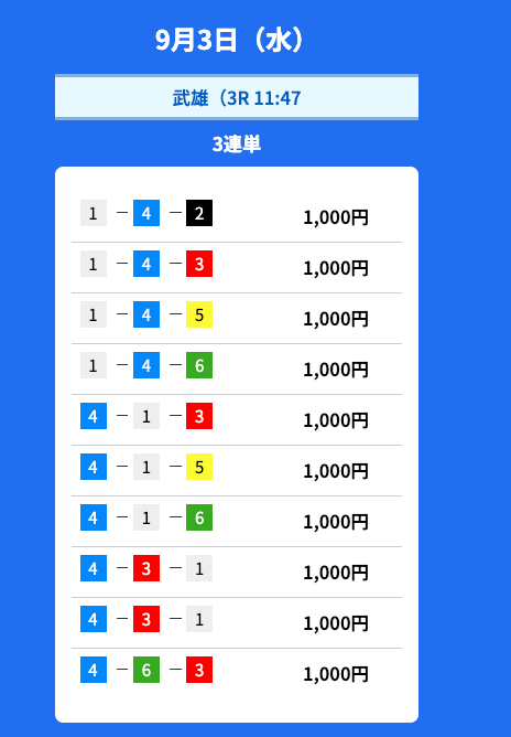 - 2025/09/03的中無料予想で17,000円獲得