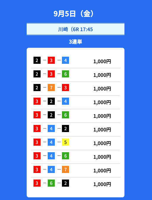 - 2025/09/05的中無料予想で35,000円獲得