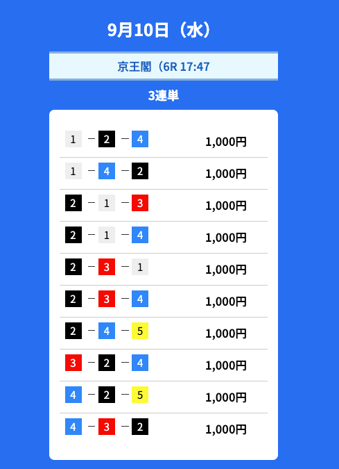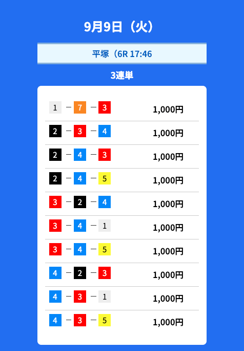 - 2025/09/10的中無料予想で54,900円獲得