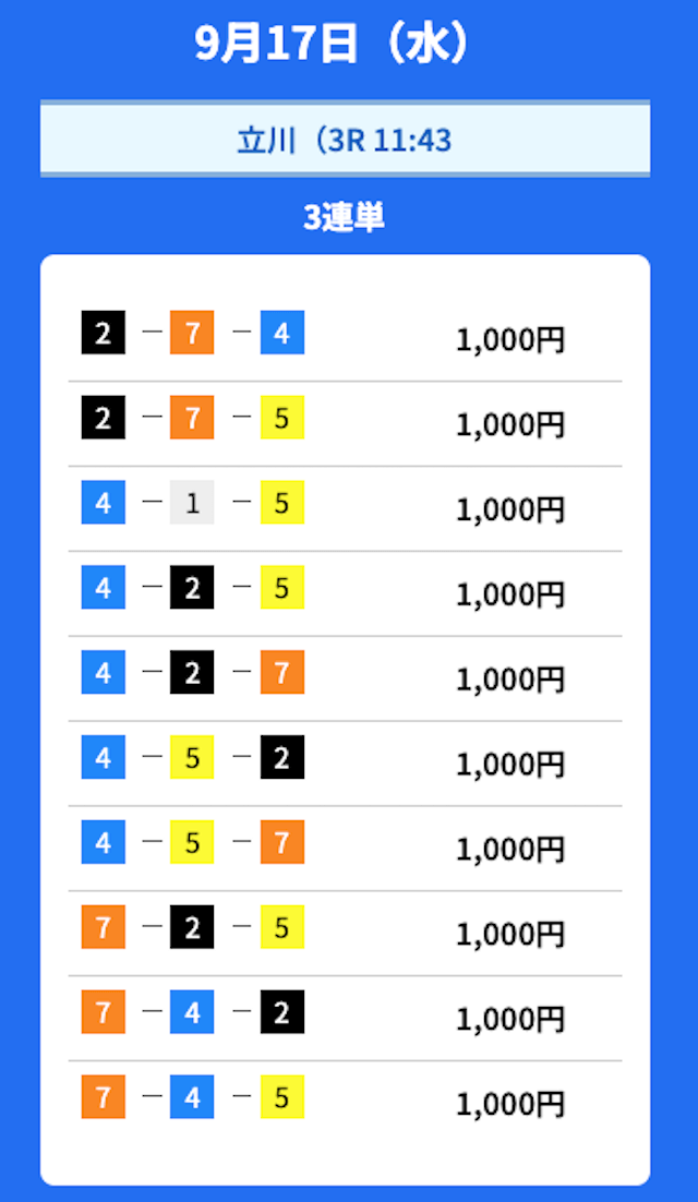 - 2025/09/17的中無料予想で17,300円獲得