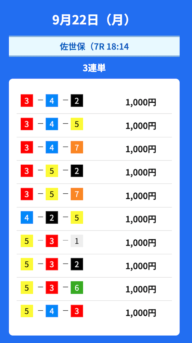 - 2025/09/22的中無料予想で68,500円獲得