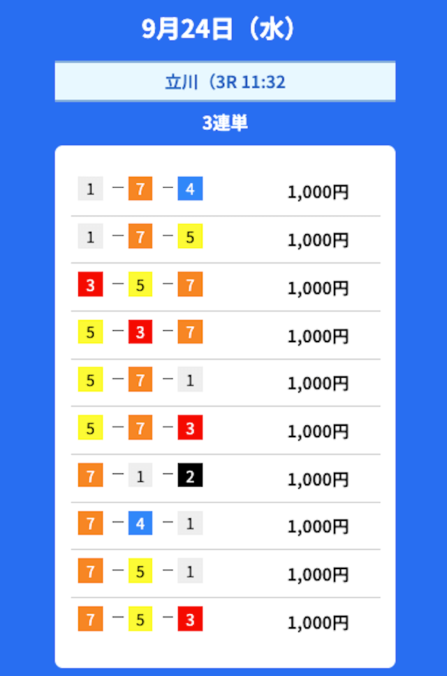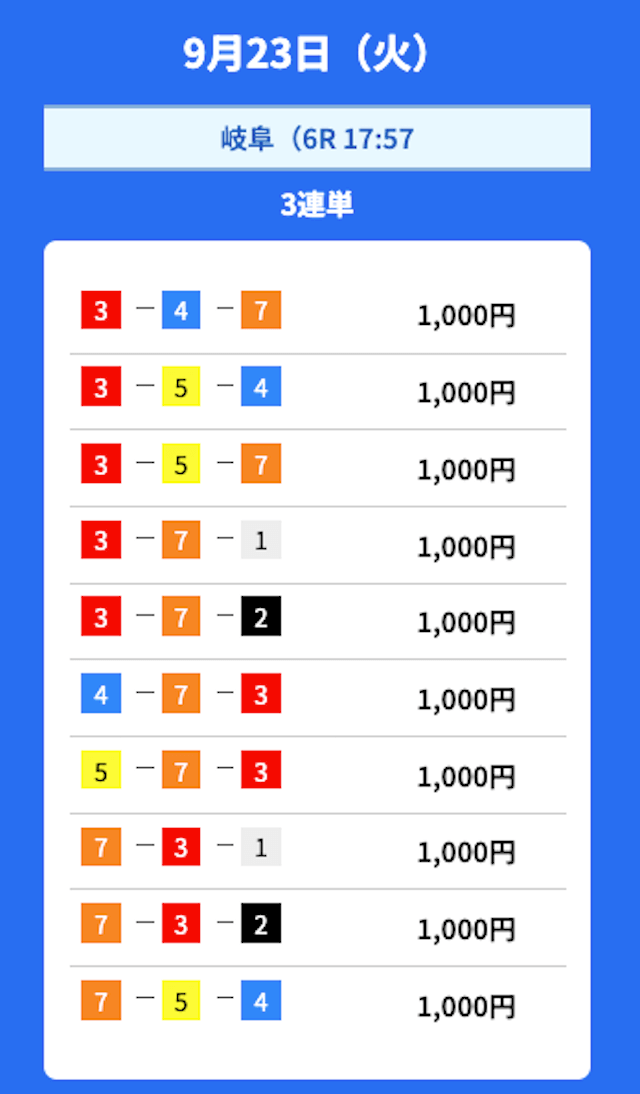 - 2025/09/23的中無料予想で36,300円獲得