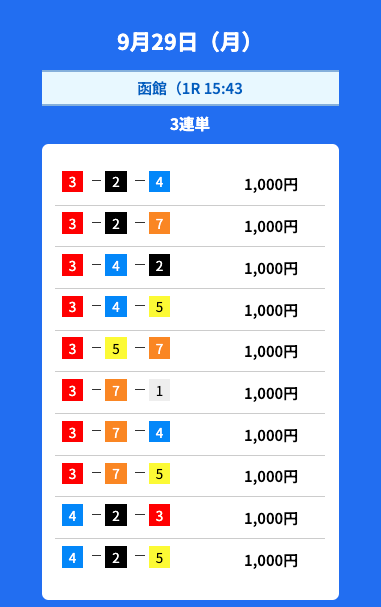 - 2025/09/29的中無料予想で24,900円獲得