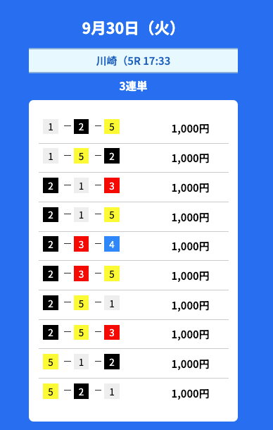 - 2025/09/30的中無料予想で51,700円獲得