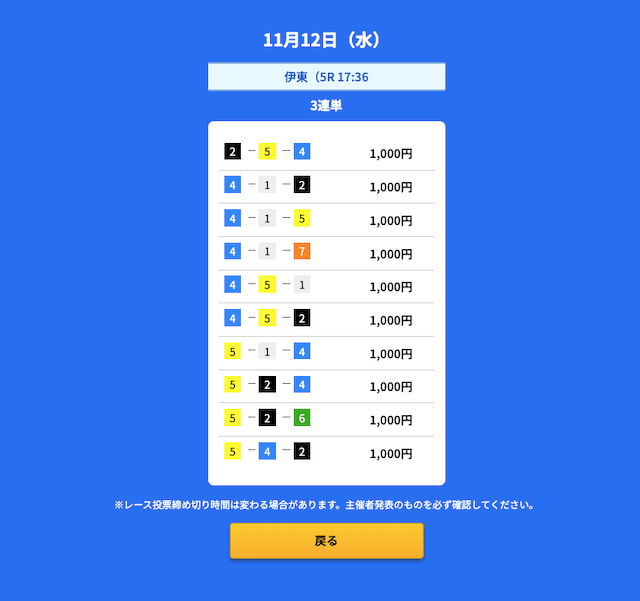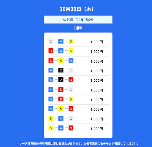 合計投資金額は1.5万円、不的中補償が付いているとはいえ車券代は返ってこないので負けたら痛い⋯。