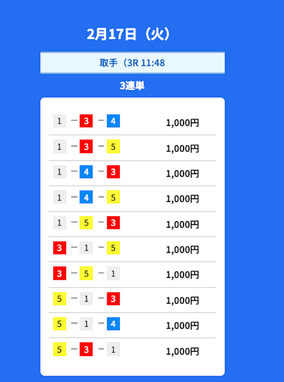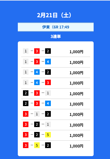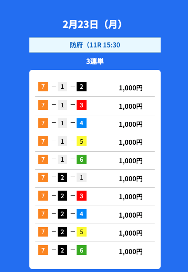 - 2026/02/23的中無料予想で21,500円獲得