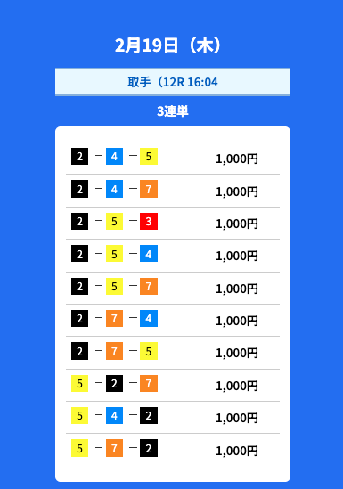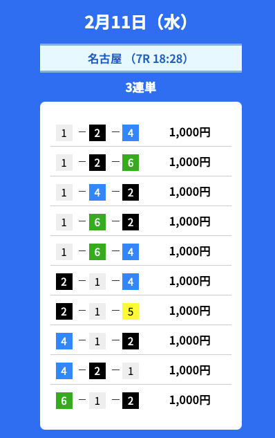 - 2026/02/11的中無料予想で45,700円獲得