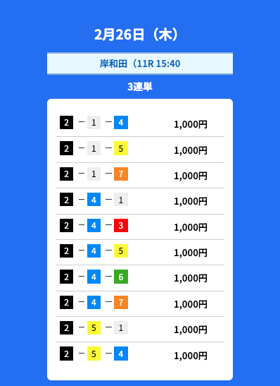 - 2026/02/24的中無料予想で23,900円獲得