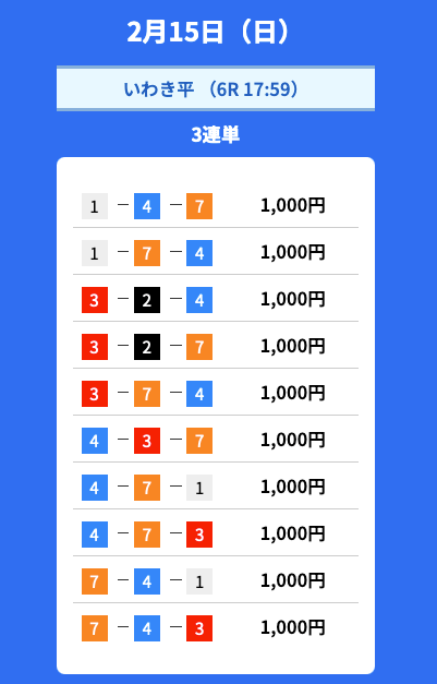 - 2026/02/15的中無料予想で74,300円獲得