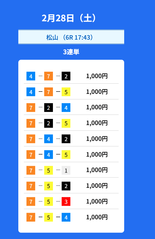 - 2026/02/28的中無料予想で36,100円獲得
