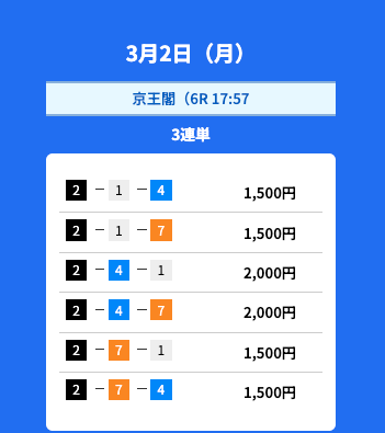 - 2026/03/02的中無料予想で13,400円獲得