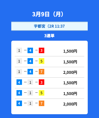 - 2026/03/09的中無料予想で16,800円獲得