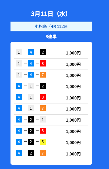 | 買い目点数 | 3連単4〜10点 |