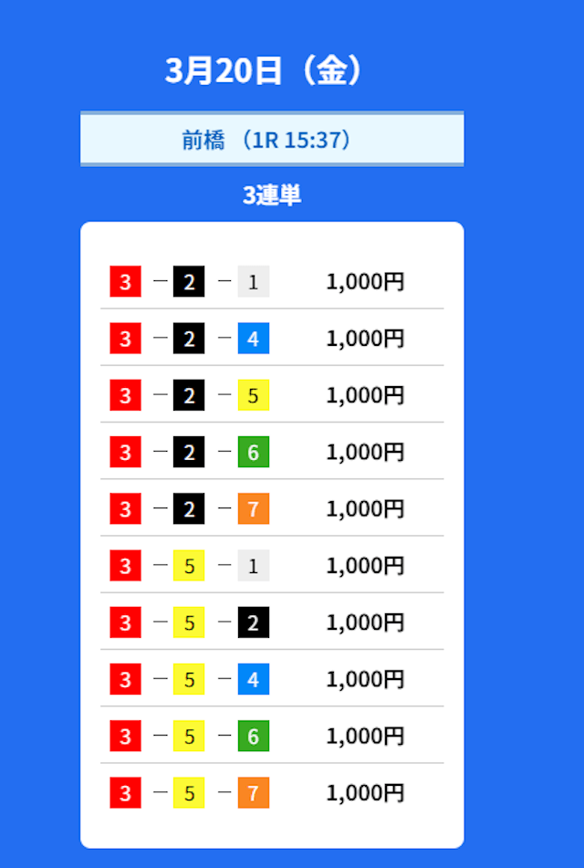 - 2026/03/20的中無料予想で13,200円獲得