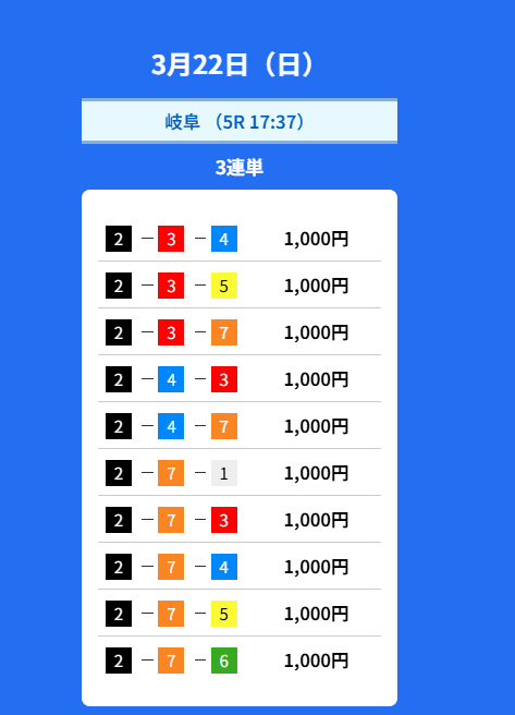 - 2026/03/17的中無料予想で40,350円獲得