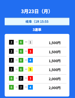 - 2026/03/23的中無料予想で16,950円獲得