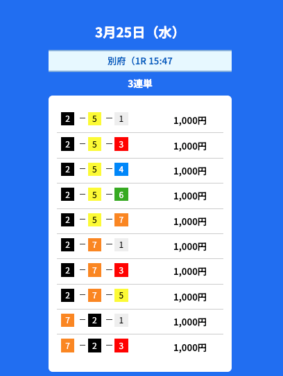 - 2025/10/03的中無料予想で36,200円獲得