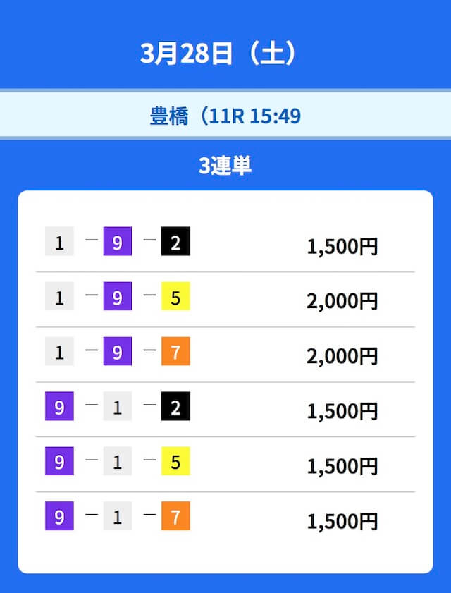 - 2025/09/26的中無料予想で29,500円獲得
