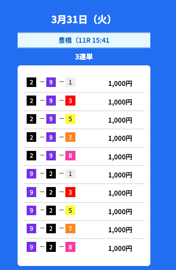 - 2026/03/31的中無料予想で10,900円獲得