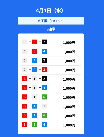 - 2026/04/01的中無料予想で75,500円獲得