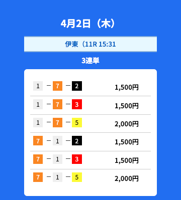 - 2026/04/02的中無料予想で17,000円獲得