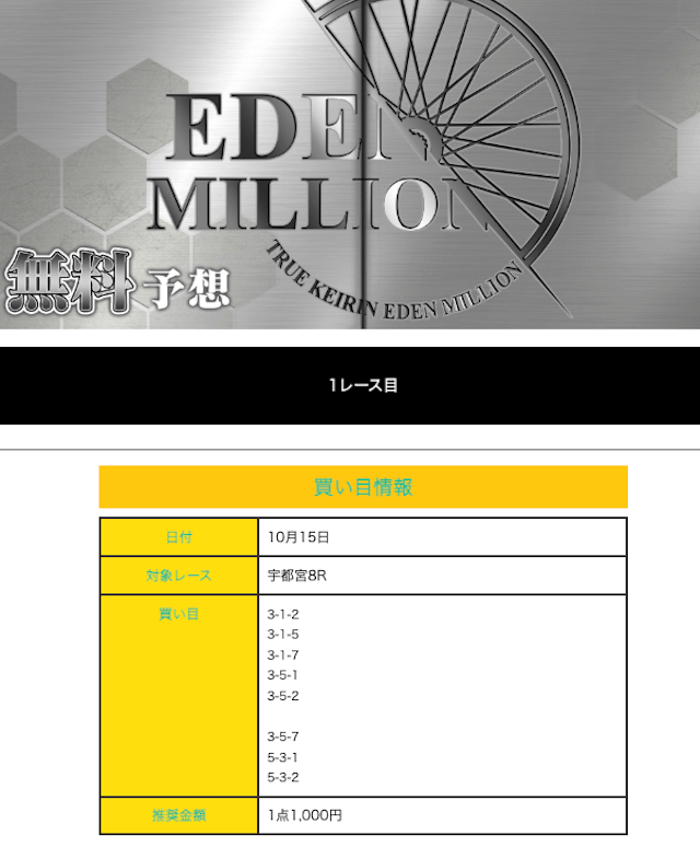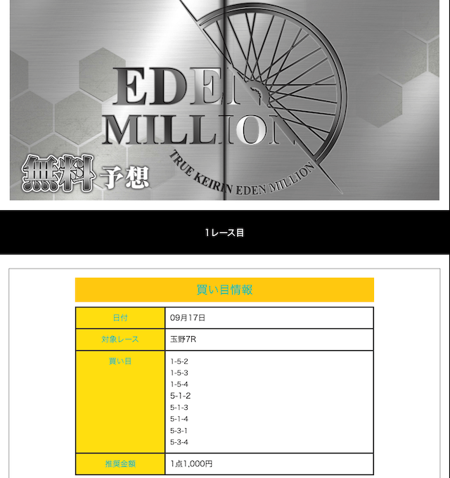 今回は「真競輪エデンミリオン(EDEN MILLION)」という競輪予想サイトをご紹介します。