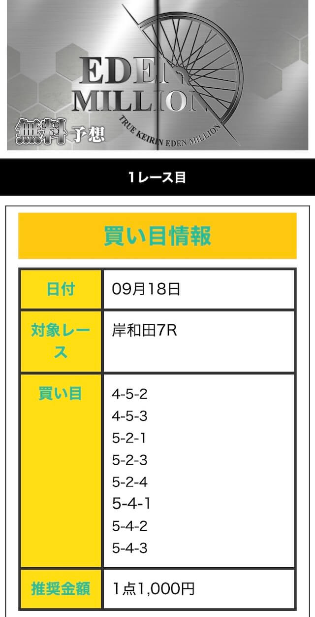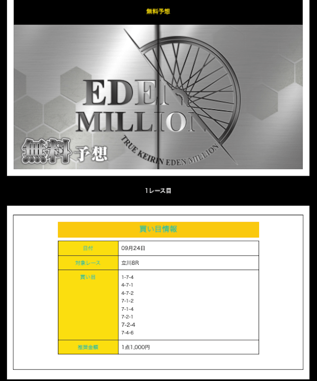 真競輪エデンミリオンは、無料・有料情報問わず稼ぐことができました。