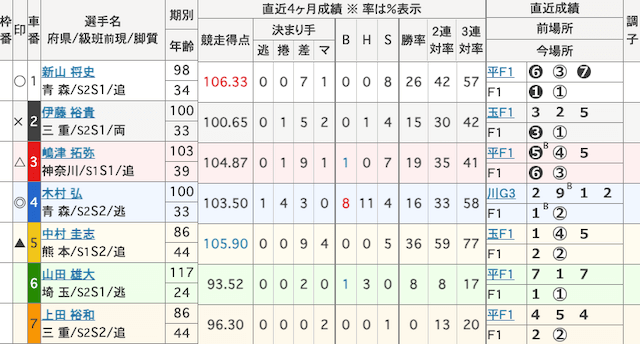 マークが多い=スジ決着が多いので、後ろから仕掛けるラインの先行・番手選手を中心に買い目を作ると良いです。