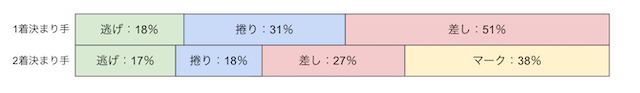 ただ、逃脚質でも得意な決まり手は異なるため、より細かい相性は以下の通りです。
