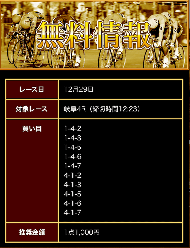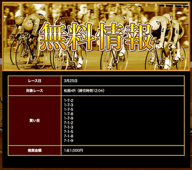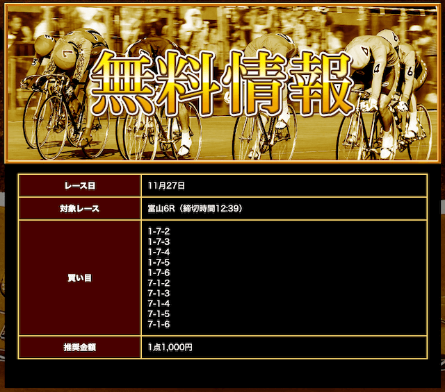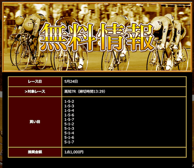 - 公開された無料予想を指示通りに購入