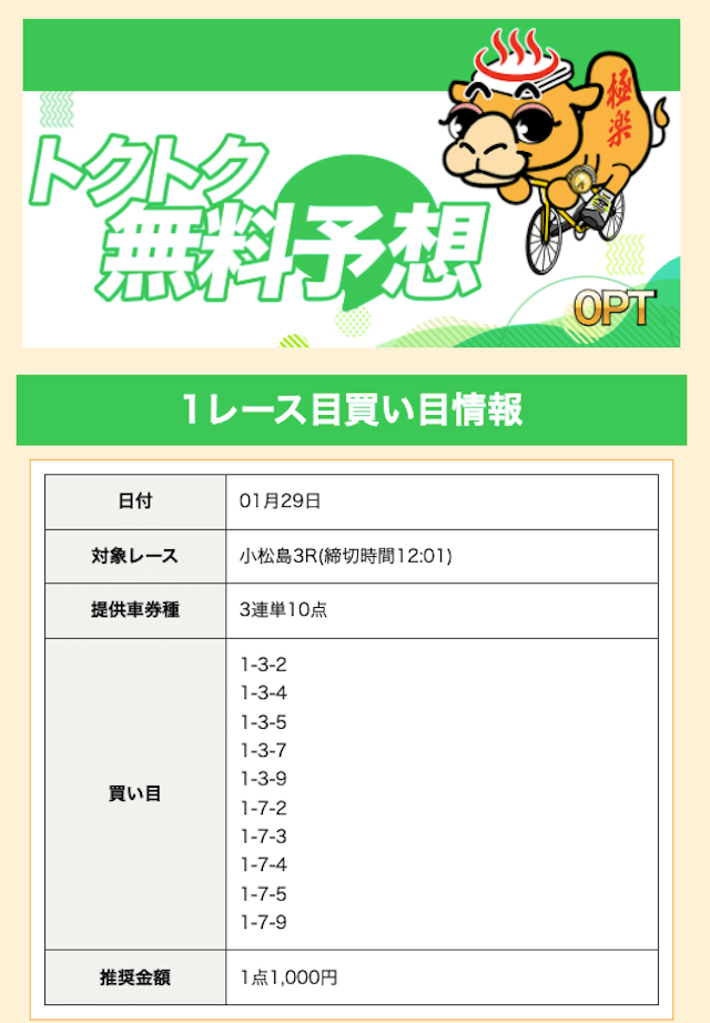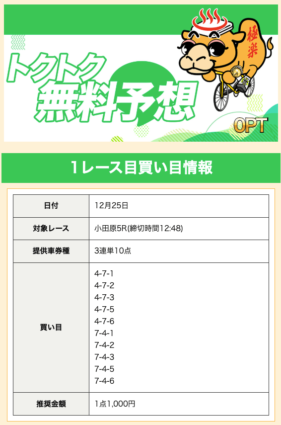無料予想一日目は当たり、今日はハズレ明日に期待している。