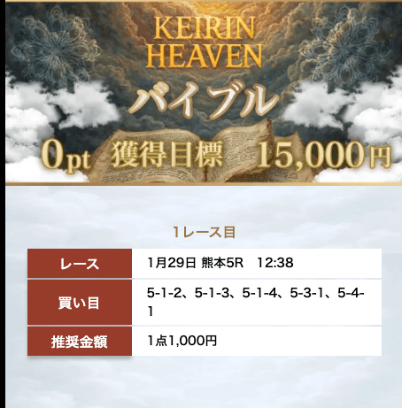 - 2026/01/29的中無料予想で14,900円獲得