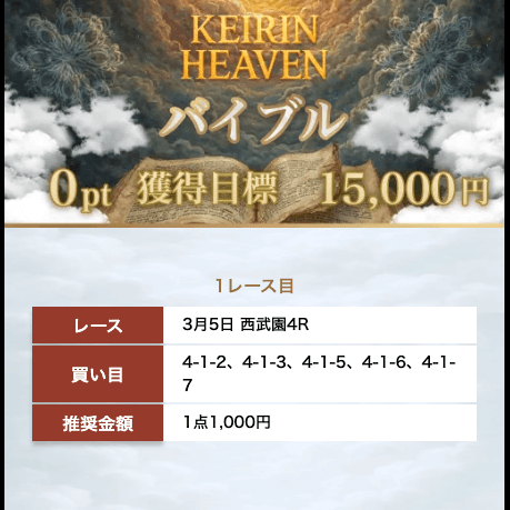 - 2026/03/12的中無料予想で6,900円獲得