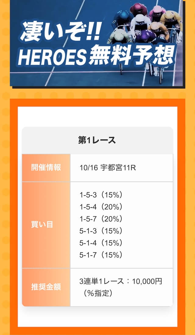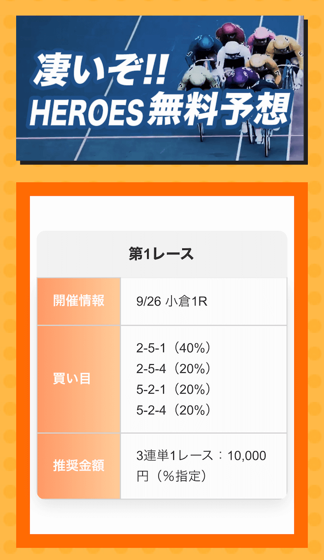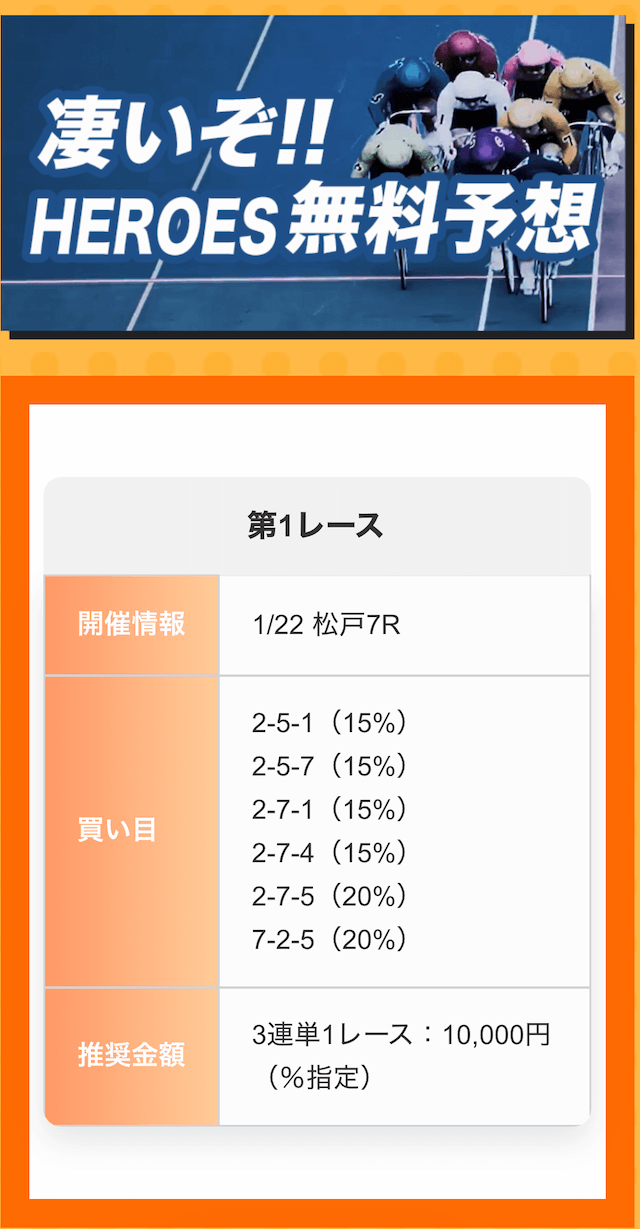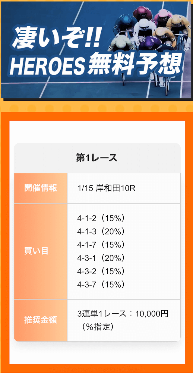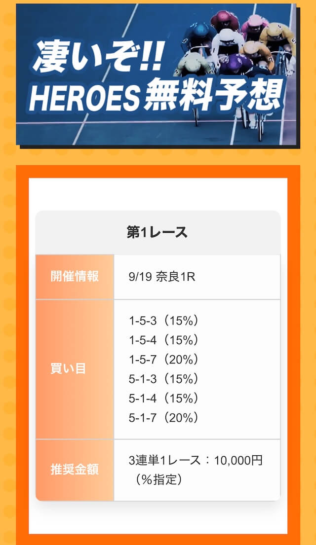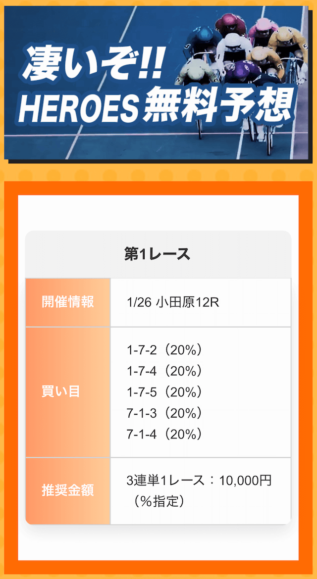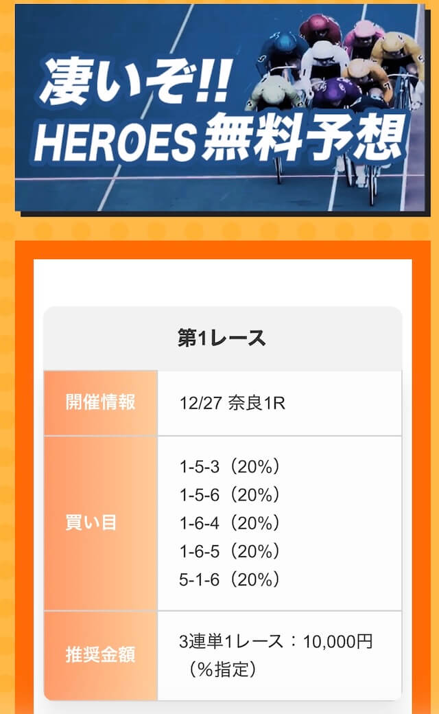 ほとんどの予想サイトは、推奨金額1万円ですが、競輪ヒーローズは2万円。