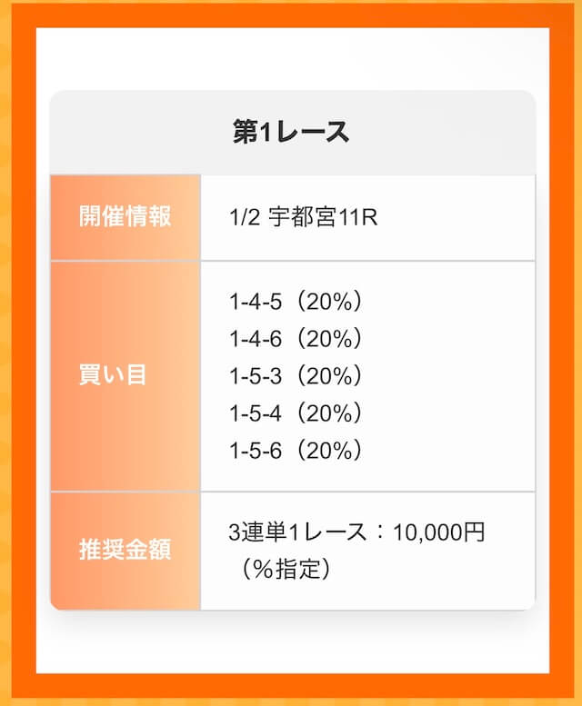 僕は軍資金少ないから、1点100円で使ってる。5点予想だから500円でできるし、ありがたい。