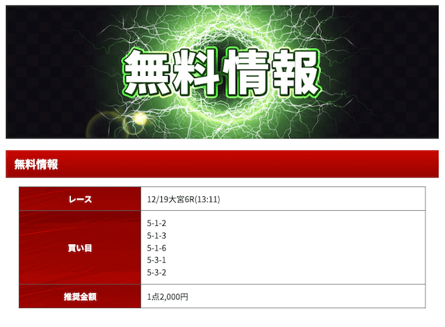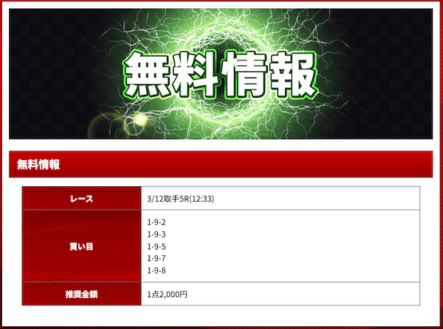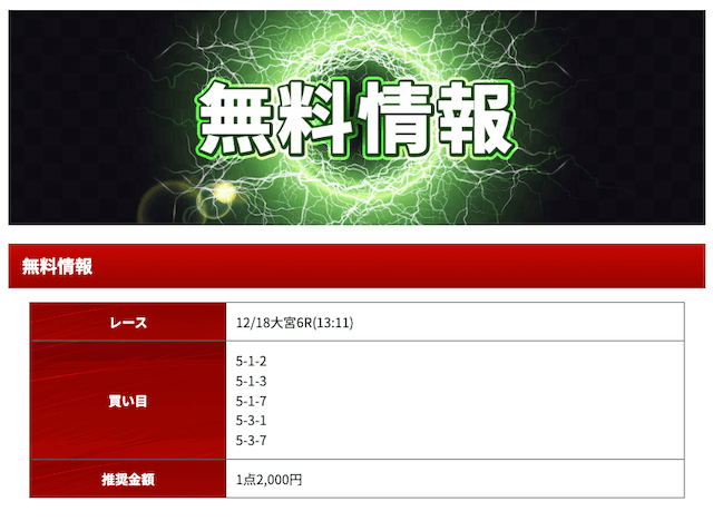 - 2024/12/12的中無料予想で55,400円獲得