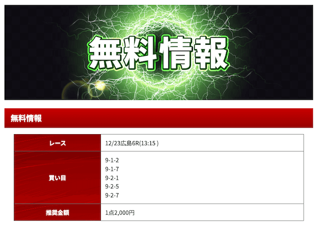 - 2025/12/23的中無料予想で11,000円獲得
