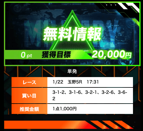 - 5.0投稿者:otot予想サイト使ったことないから、まずはお金かけずに使えるところ探してここにたどり着いた。最小500円から使えるし、それでいてオッズ20倍以上とか当てるから期待以上でした。